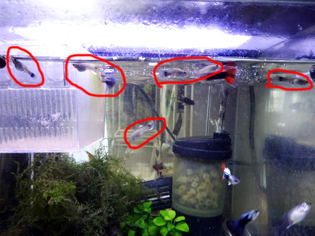 水槽の水替えついでに2回目の稚魚を隔離槽から本槽に移しました。